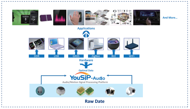 YouSiP-Audio高級應(yīng)用支持 YouSiP-Audio開發(fā)了一套完整的硬件解決方案,用于收集原始音頻、語音、運(yùn)動、超聲波和圖像信號數(shù)據(jù),然后將它們傳遞給主機(jī)設(shè)備。