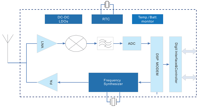 Low power consumption: RX<10mW; TX<12mW@0dBm